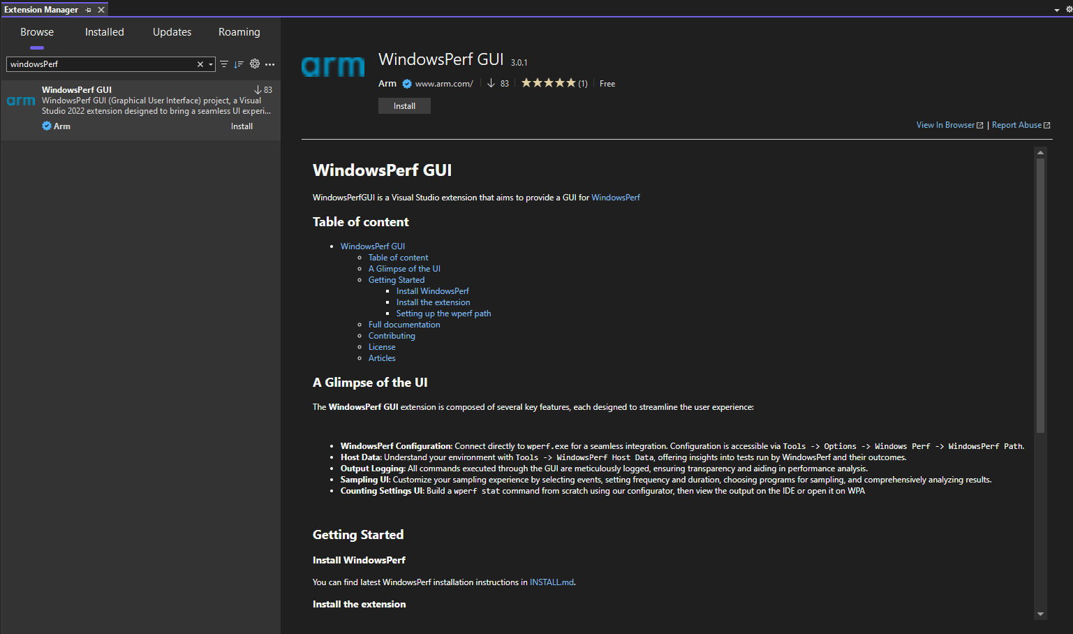 You can also install the WindowsPerf Visual Studio Extension from GitLab.